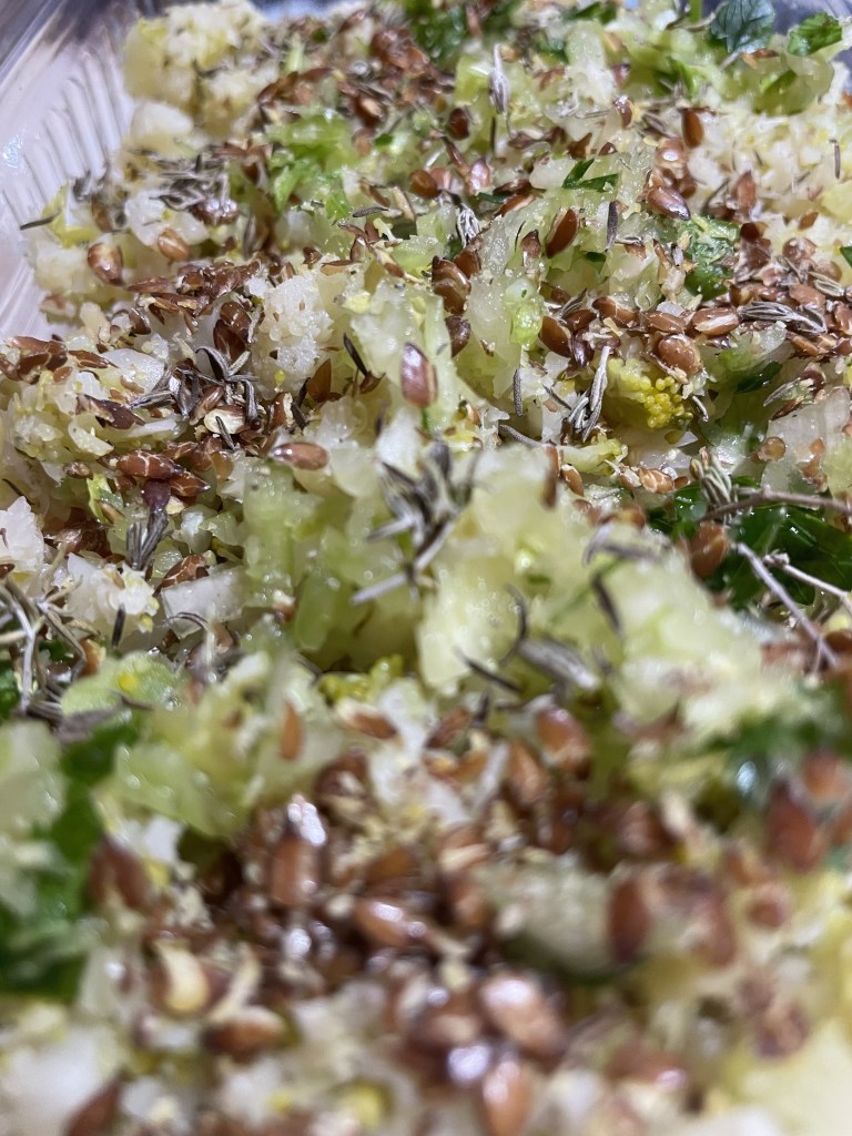 Няма как да минем без рибка. Комбинацията от бяла риба и сюмга набавят така необходимите омега 3 мастни киселини, особено важни за нашите зрели кучовци. Тяхната полза е в много направления, основните от които: сърдечно-съдова система, теросклероза, холестерол, зрение, нормално функциониране на мозъка и сърцето. За да бъде удоволствието пълно сме добавили карфиол, броколи, моркови, сладък картоф, магданоз, черупки от яйца и ленено семе.